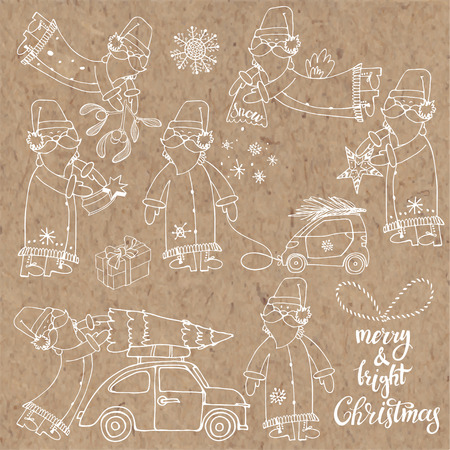 サンタ クロース 7 文字 ベクター クラフト紙にスケッチ集 お祝いクリスマス要素を手描きします ベクトル オブジェクトを分離します のイラスト素材 ベクタ Image